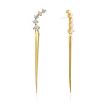 The Comet Earrings bring celestial energy to modern elegance. Featuring a sleek gold spike anchored by a trail of brilliant CZ stones, these earrings evoke the beauty of a comet streaking across the night sky bold, radiant, and unforgettable.