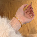 Inspired by the strength and beauty of nature, the Bamboo Bangle brings organic elegance to modern jewelry. Its textured, branch-like silhouette is adorned with precision-cut cubic zirconia stones, adding brilliance to a timeless 22k gold-plated finish.